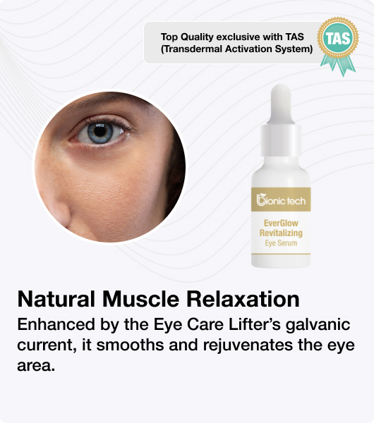 Natural Muscle Relaxation and Smoothing of Expression Lines: Acmella Oleracea Extract: Known as "Nature's Botox," Acmella Oleracea extract has natural muscle-relaxing properties. When combined with the targeted delivery facilitated by the galvanic current, this ingredient can help reduce the visibility of expression lines around the eyes. The galvanic current enhances the penetration of the Acmella Oleracea extract, allowing it to work on a deeper level to relax muscle tension, resulting in a smoother and more rejuvenated eye area.