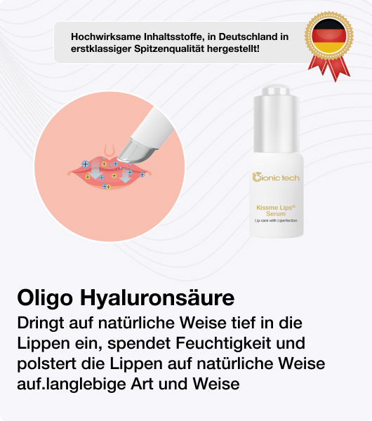 Steigert den Lipogeneseprozess in den Lippenzellen und macht die Lippen deutlich sichtbar voluminöser.