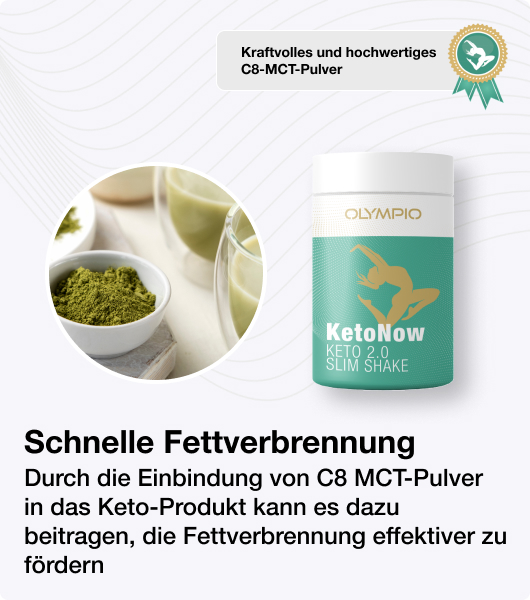 C8 MCT (Caprylsäuretriglyceride) ist eine Art mittelkettiges Triglycerid, das von der Leber schnell absorbiert und in Ketone umgewandelt wird. Ketone sind eine alternative Energiequelle für den Körper, insbesondere während einer ketogenen Diät. Dies fördert einen Zustand der Ketose und regt den Körper an, Fett zur Energiegewinnung zu verbrennen. Vorteil: Durch die Einarbeitung von C8 MCT-Pulver in das Keto-Produkt kann die Fettverbrennung effektiver gefördert werden als bei anderen MCTs. Diese schnelle Umwandlung in Ketone unterstützt einen erhöhten Energieverbrauch und hilft beim Abnehmen durch einen verbesserten Fettstoffwechsel.