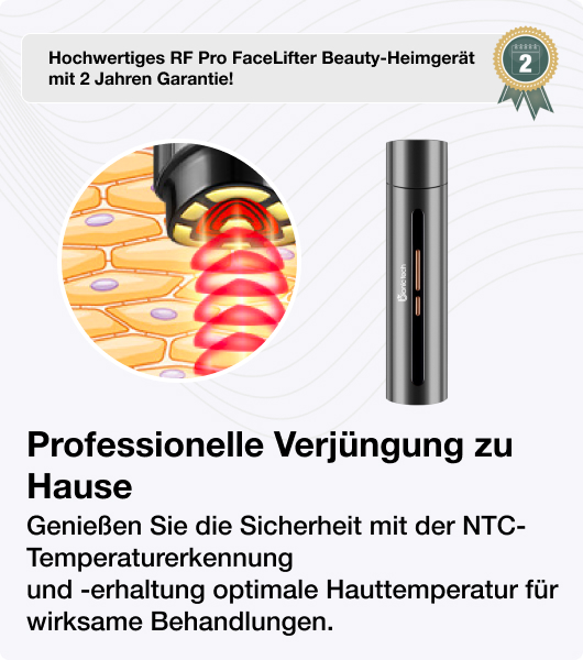 Verändern Sie Ihre Hautpflegeroutine mit dem Bionic Tech RF Pro Facelifter. Professionelle Verjüngungsergebnisse sind jetzt bequem von zu Hause aus erreichbar. TOP-Profi-Qualität mit 2 Jahren Vollgarantie!